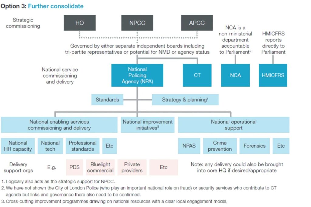 - Profound frontline constraints – perhaps most importantly, the weakness of national enabling or operational support functions doesn’t just lead to waste. It actively constrains frontline cops doing their jobs. Neighbourhood policing is inevitably harmed by the weak centre of policing and victims and communities end up losing out.